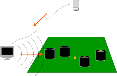 A Small Size robot soccer game takes place between two teams of six robots each. All objects on the field are tracked by a global vision system that processes the data provided by two cameras that are attached to a camera bar located above the playing surface. Off-field computers are used to communicate referee commands and position information to the robots. Typically, these computers also perform most, if not all, of the processing required for coordination and control of the robots.